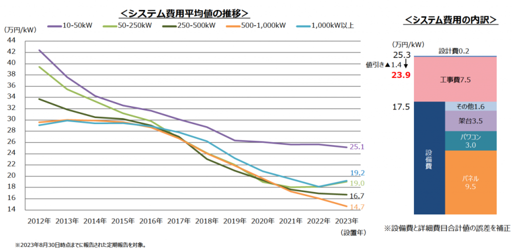 昔に比べて導入費用が下落してきたとは言え、kWあたりの平均価格は約17万円(250~500kWのシステム)と、決して安いとは言い切れない金額です。