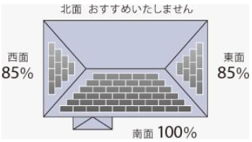 多面屋根に設置する場合、シングルストリング型のパワーコンディショナ1台に接続すると、周囲環境によっては発電量をロスする場合があります。